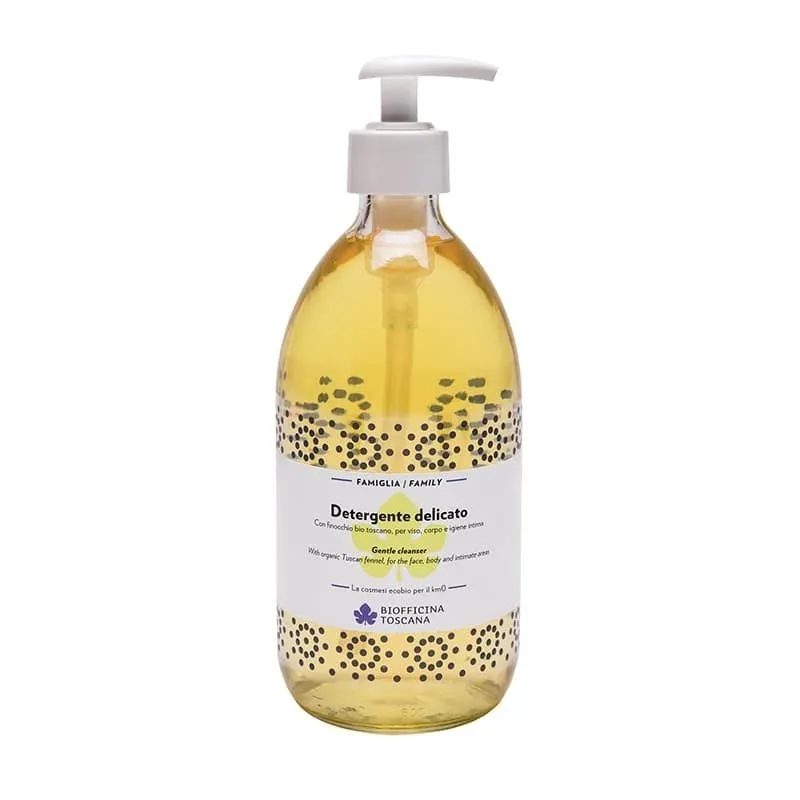 Formulato a pH 5, con tensioattivi di origine vegetale, estratti bio di finocchio toscano e calendula, è adatto all’igiene quotidiana di viso, corpo e igiene intima. Svolge una delicata azione lenitiva lasciando un naturale, gradevole profumo. Pensato per tutta la famiglia, è indicato e testato anche per pelli sensibili e delicate.