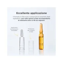 Applicare mezza fiala su viso e collo con un leggero massaggio, fino a completo assorbimento.